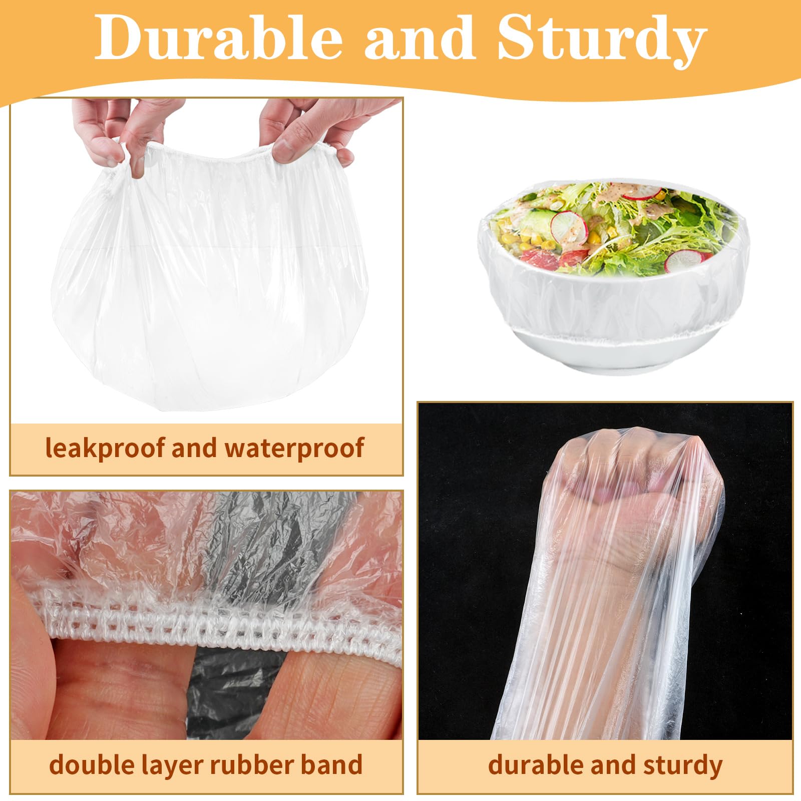 Sturdy and Reusable: These bowl covers are sturdy and anti-puncture, and not easy to rip; plastic bowl covers can be repeatedly cleaned and you can reuse many times; handy for bread proofing and storing leftovers, a must-have kitchen gadget"
